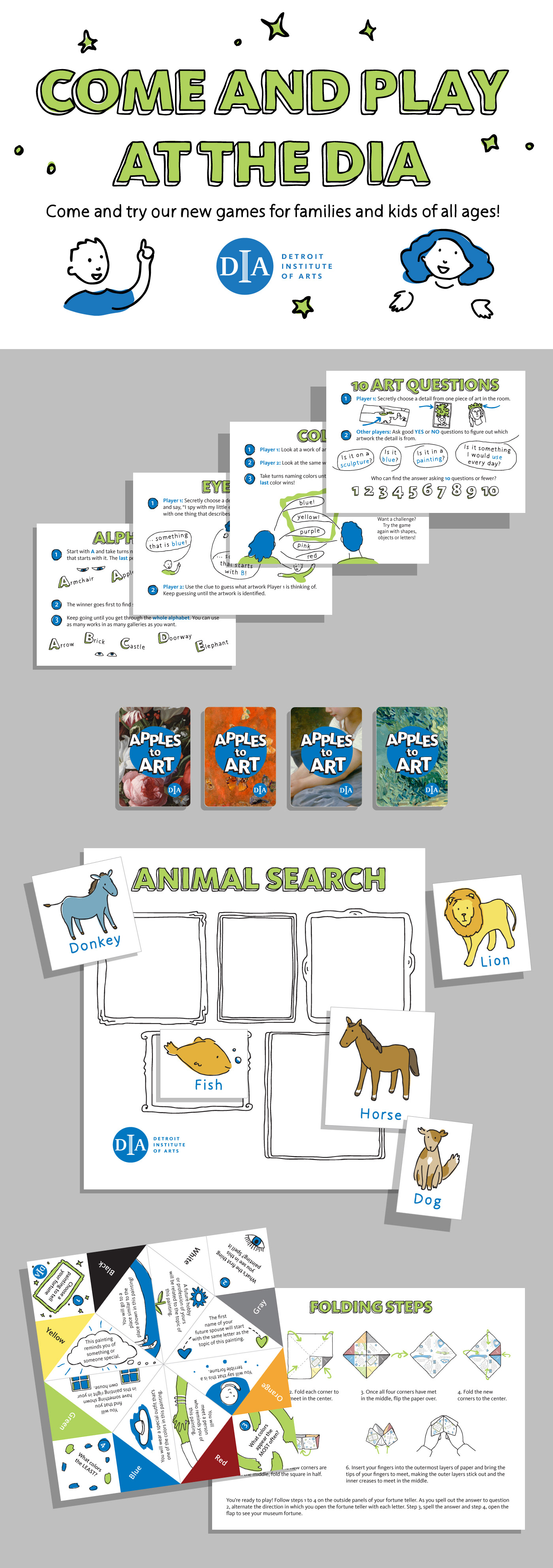 Illustrations for a set of family activities created to engage young people with art in new ways at the Detroit Institute of Art